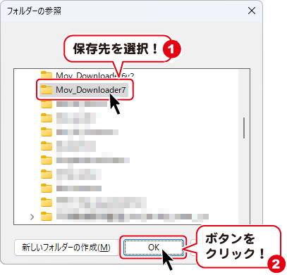保存先を選択し、OKボタンをクリックします。