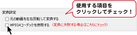 チェックを入れると、変換に使用するコーデックを変更することができます。