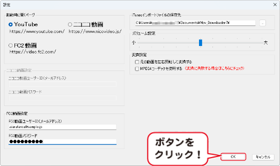 ④ ダウンロードする動画(音楽)のボリュームを設定する