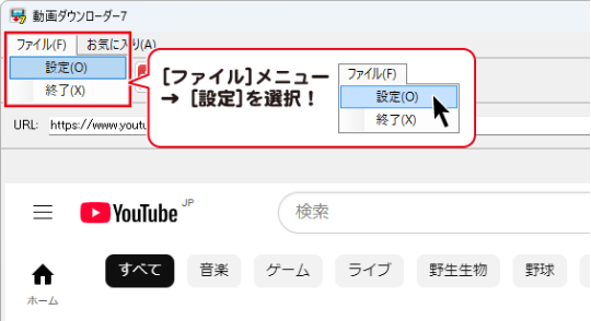 動画をダウンロードする前に、動画をダウンロードするための設定を行います。