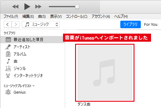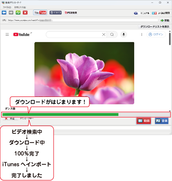 ダウンロードした動画の音楽(音声)がiTunesにインポートされます。