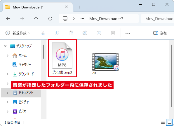 設定画面で指定した保存場所に、音楽(音声)が保存されています。
