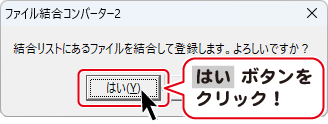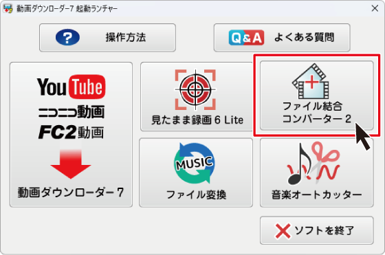 起動ランチャー画面にある「ファイル結合コンバーター2」のボタンをクリックします。