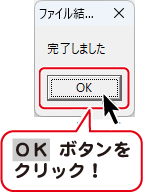 [完了しました]という画面が表示されましたら、OKボタンをクリックします。