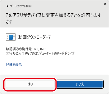 ※下の画面が表示されましたら「はい」ボタンをクリックします。