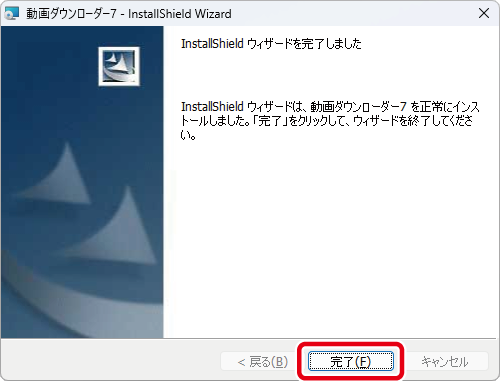 InstallShieldウィザードが正常に終了すると下のような画面が