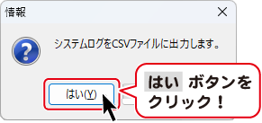 システムログがCSV ファイルに出力されました。