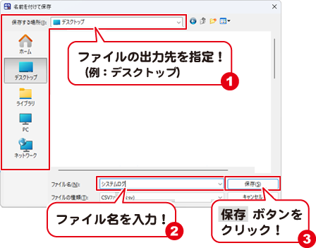 CSV ファイルの保存先を指定