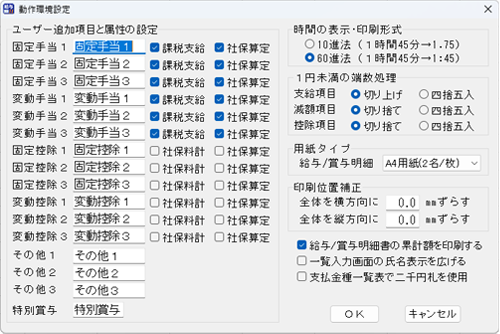 | 固定控除1~3 | 『食費控除』など、毎月金額が固定の控除を追加する際に使用します。(全角6文字まで) |