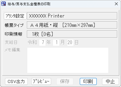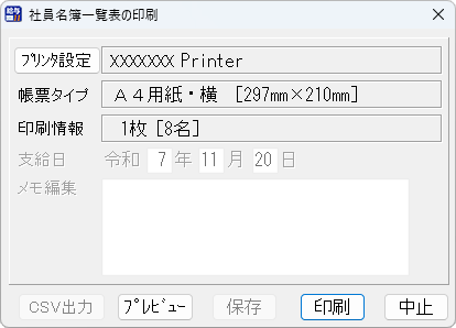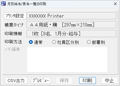 給与/賞与支払金種表の印刷画面