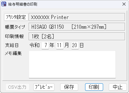 給与明細書の印刷画面