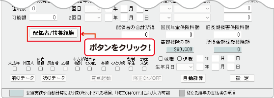 上記画面にある配偶者/扶養親族ボタンをクリックすると表示されます。