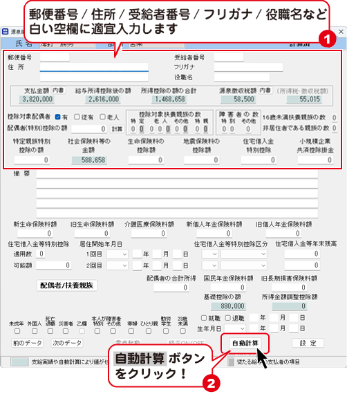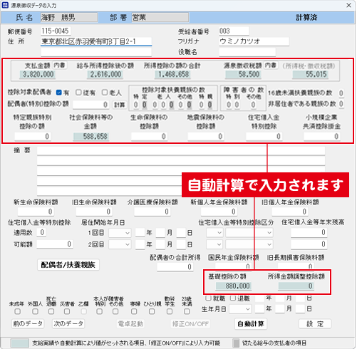 社会保険料等の金額などの欄が自動計算で入力されます。