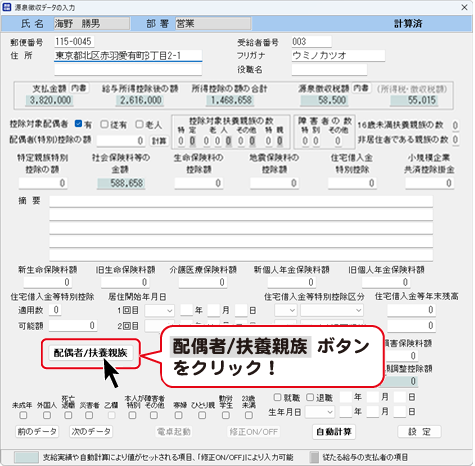 白い空欄の入力が終わりましたら、配偶者/扶養親族ボタンをクリックします。