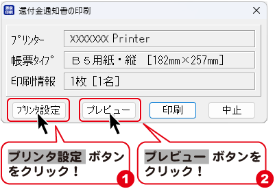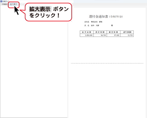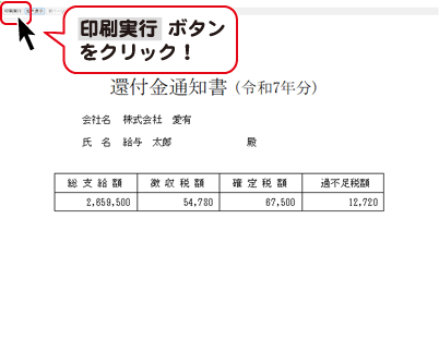 ボタンをクリックして、、還付金通知書の印刷画面を表示します。