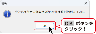 「会社名や所定労働条件などの会社情報を設定して下さい。」と