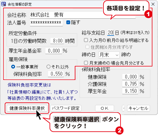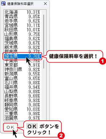 健康保険料率選択ボタンをクリックします。