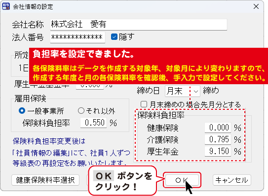 各保険料率が変更になった場合は、手入力で変更してください。