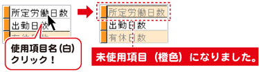 使用する項目は白、未使用の項目は橙色になっています。