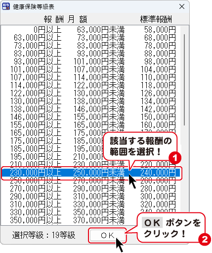 健康保険等級表画面が表示されます。