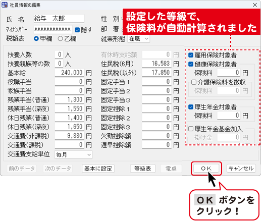 設定した等級で、保険料が計算されました。