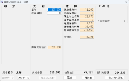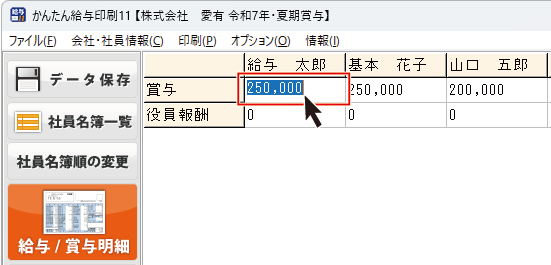 賞与データの詳細を入力することができます。