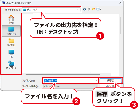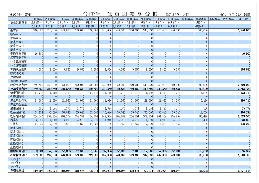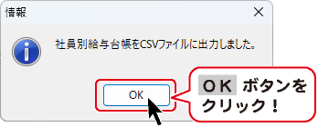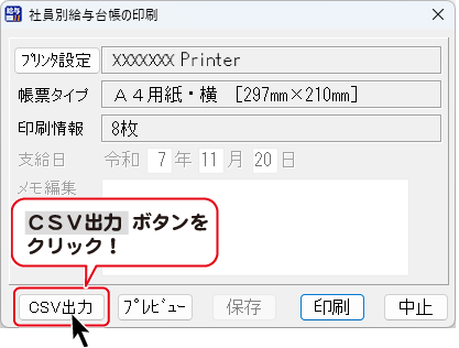 社員別給与台帳のデータは、CSVファイルで出力して、データを管理することができます。