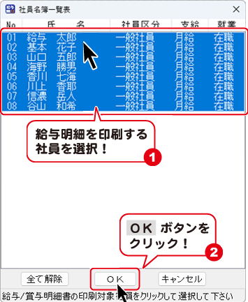 ボタンをクリックして、社員名簿一覧表画面を表示します。
