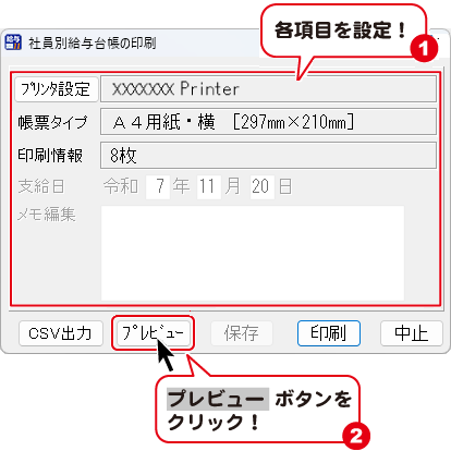 印刷プレビュー画面で、印刷プレビューを確認します。