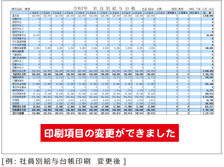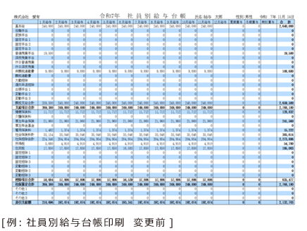 変更した内容は、社員別給与台帳、月別給与/賞与一覧の印刷に反映されます。