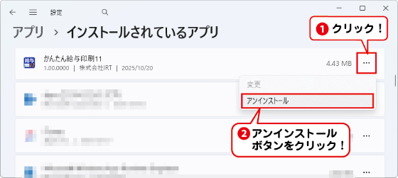 お使いのパソコンから「かんたん給与印刷11」をアンインストール(削除)する場合の手順です。