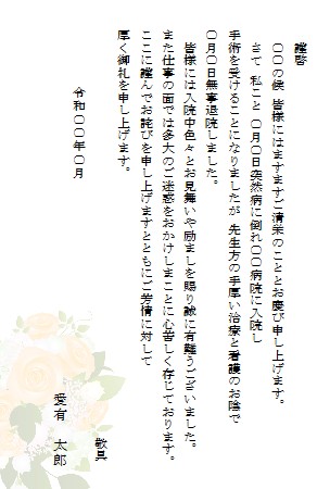 | 退院挨拶状 | 退職挨拶状 | 転勤挨拶状_001 | 転勤挨拶状_002 |