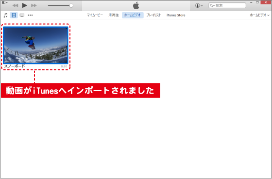 正常にダウンロードが完了すると、動画をiTunesへインポートします。