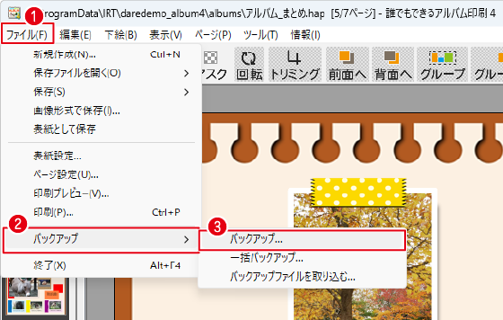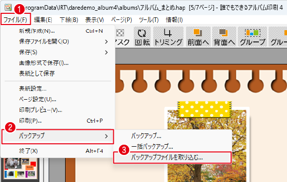データ移動先のパソコンで、「誰でもできるアルバム印刷4」を起動して、