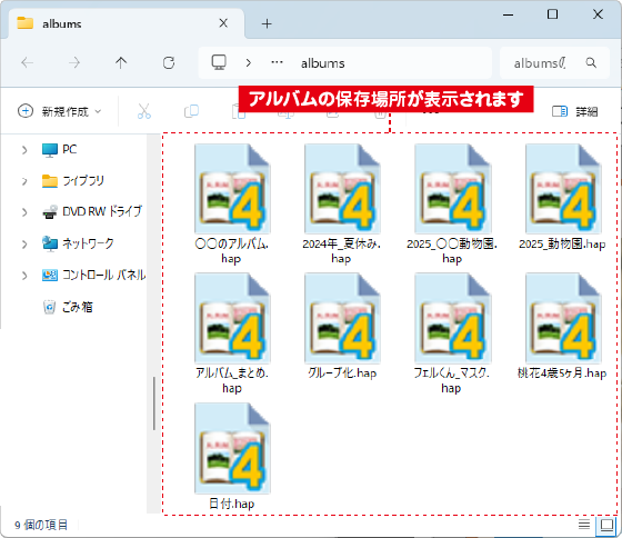 アルバムファイルの保存場所が表示されます。
