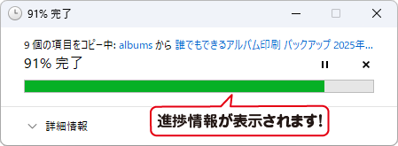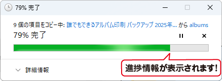 進捗情報が表示されます。