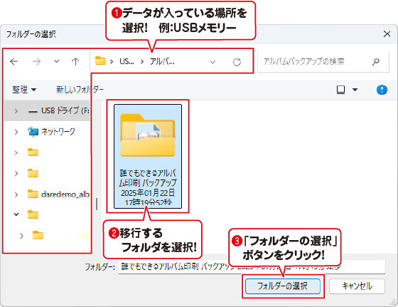バックアップフォルダを選択します。