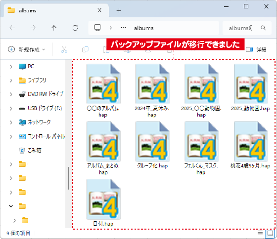 バックアップファイルが移行できました。