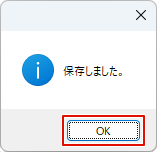 「保存しました。」と確認画面が表示されますので、OKボタンをクリックします。