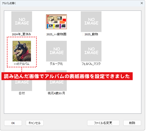 ※「アルバムを開く」画面で表示されます。
