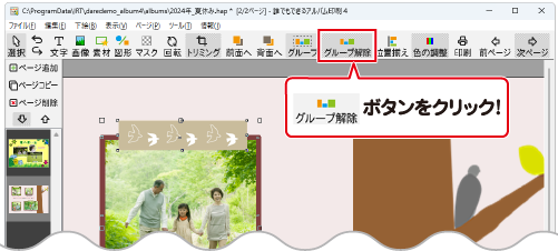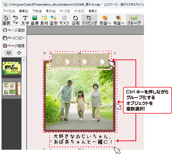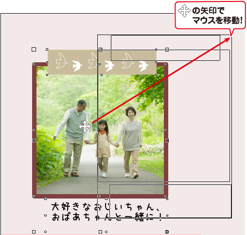 グループ化されたオブジェクトは、一体化して移動することができます。