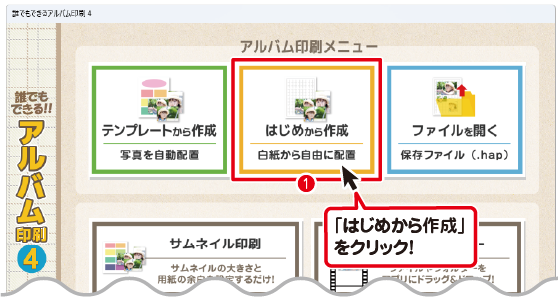「誰でもできるアルバム印刷4」を起動します。下のようなランチャー画面が表示されます。