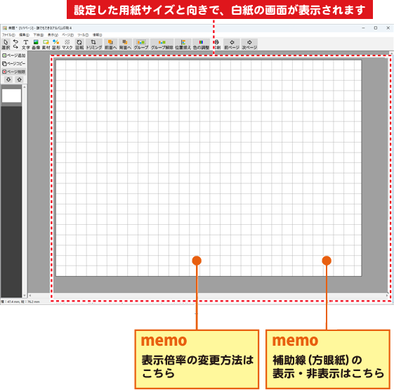 設定した用紙サイズと用紙の向きで、白紙の画面が表示されます。