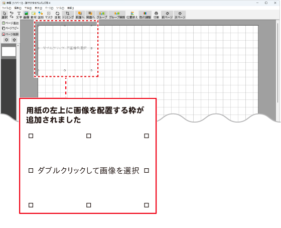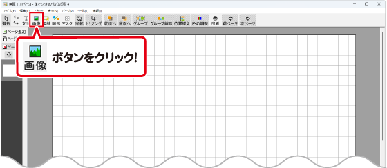 1. 画像ボタンをクリックして、画像を配置する枠を追加します