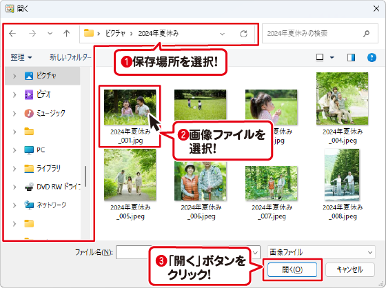 写真やイラストなどの画像ファイルを好きな場所に配置します。