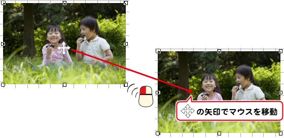 画像の枠内を左クリックしたままマウスを移動すると、画像の位置を変更できます。