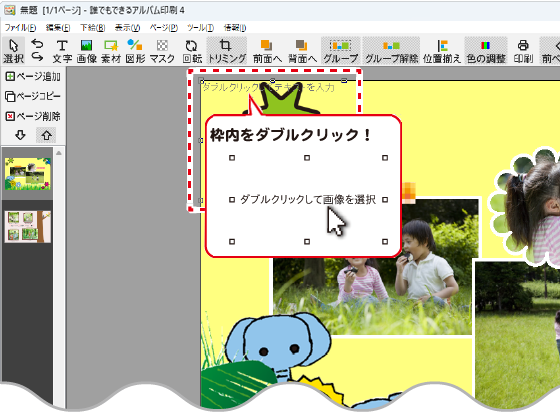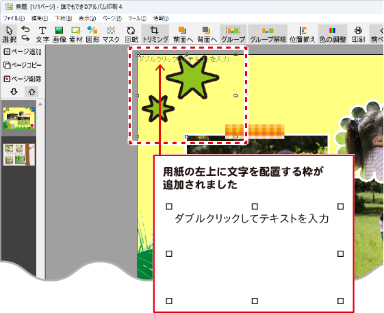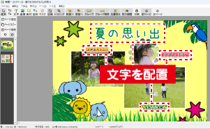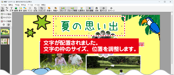 写真、素材、図形、文字を自由に配置してみよう