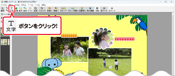 1. 文字ボタンをクリックして、文字を配置する枠を追加します