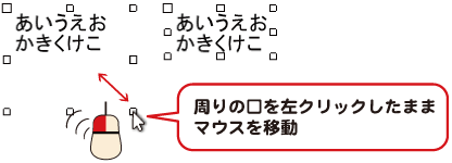 四角にマウスカーソルを合わせて、左クリックしたままマウスを移動すると、枠のサイズを変更できます。