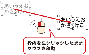 文字の枠内を左クリックしたままマウスを移動すると、文字の位置を変更できます。